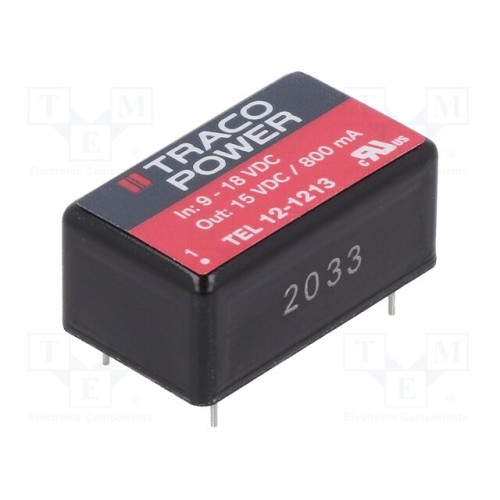 TRACO POWER TEL 12-1213 | Перетворювач: DC/DC; 12Вт; Uвх: 9÷18ВDC; Uвих: 15ВDC; Iвих: 800мА
