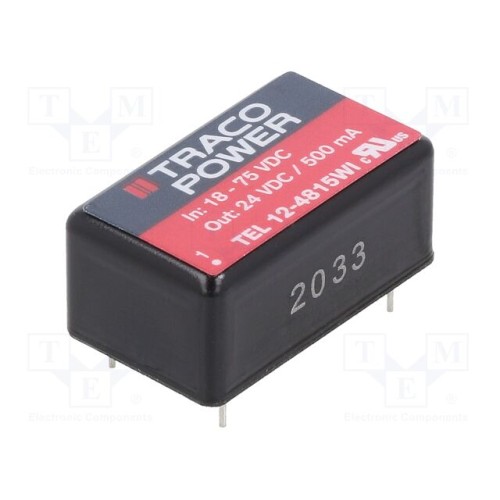 TRACO POWER TEL 12-4815WI | Перетворювач: DC/DC; 12Вт; Uвх: 18÷75ВDC; Uвих: 24ВDC; Iвих: 500мА