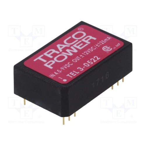 TRACO POWER TEL 3-0522 | Перетворювач: DC/DC; 3Вт; Uвх: 4,5÷9ВDC; Uвих: 12ВDC; Uвих.2: -12ВDC