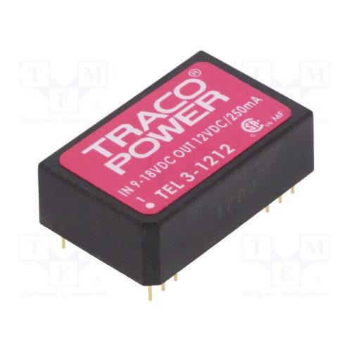 TRACO POWER TEL 3-1212 | Перетворювач: DC/DC; 3Вт; Uвх: 9÷18ВDC; Uвих: 12ВDC; Iвих: 250мА