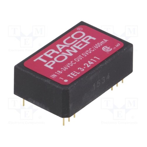 TRACO POWER TEL 3-2411 | Перетворювач: DC/DC; 3Вт; Uвх: 18÷36ВDC; Uвих: 5ВDC; Iвих: 600мА; THT