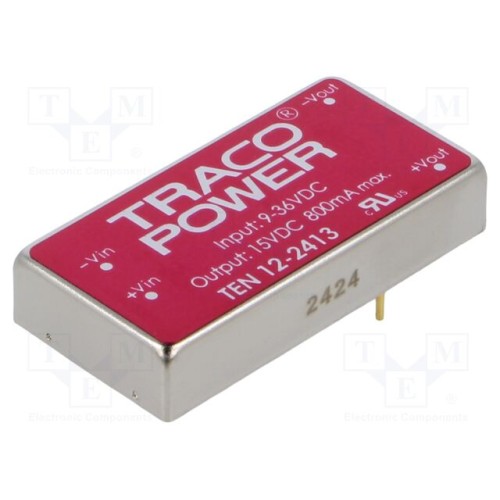 TRACO POWER TEN 12-2413 | Перетворювач: DC/DC; 12Вт; Uвх: 9÷36ВDC; Uвих: 15ВDC; Iвих: 800мА