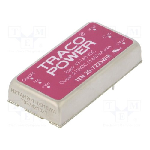 TRACO POWER TEN 20-7223WIR | Перетворювач: DC/DC; 20Вт; Uвх: 43÷160ВDC; Uвих: 15ВDC; Iвих: 667мА