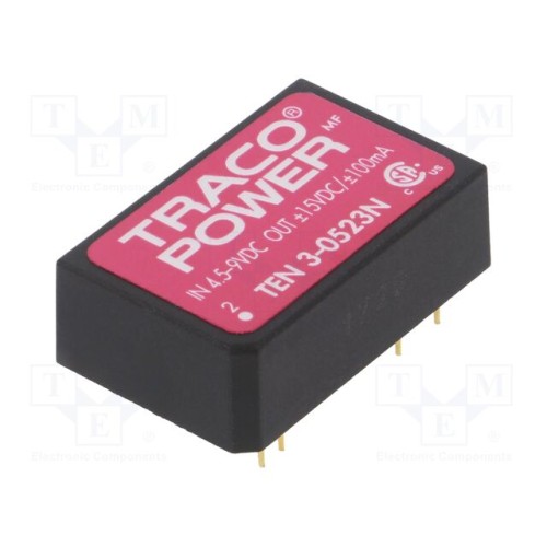 TRACO POWER TEN 3-0523N | Перетворювач: DC/DC; 3Вт; Uвх: 4,5÷9ВDC; Uвих: 15ВDC; Uвих.2: -15ВDC