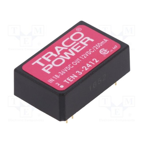 TRACO POWER TEN 3-2412 | Перетворювач: DC/DC; 3Вт; Uвх: 18÷36ВDC; Uвих: 12ВDC; Iвих: 250мА