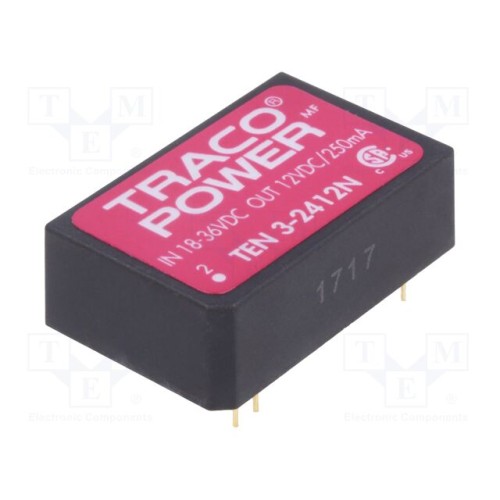 TRACO POWER TEN 3-2412N | Перетворювач: DC/DC; 3Вт; Uвх: 18÷36ВDC; Uвих: 12ВDC; Iвих: 250мА