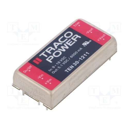TRACO POWER TEN 30-1211 | Перетворювач: DC/DC; 30Вт; Uвх: 9÷18ВDC; Uвих: 5,1ВDC; Iвих: 6000мА