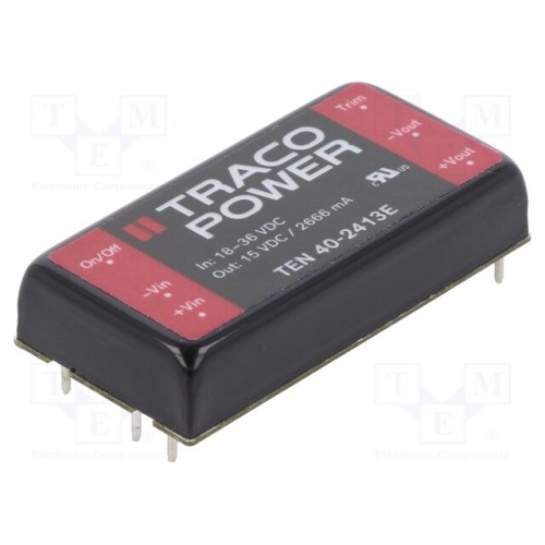 TRACO POWER TEN 40-2413E | Перетворювач: DC/DC; 40Вт; Uвх: 18÷36ВDC; Uвих: 15ВDC; Iвих: 2666мА