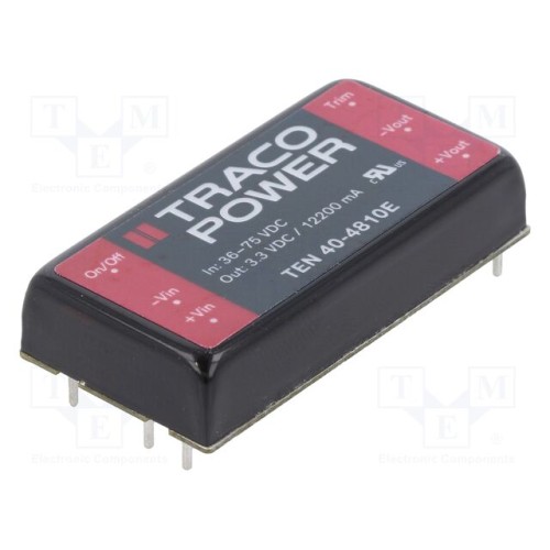 TRACO POWER TEN 40-4810E | Перетворювач: DC/DC; 40Вт; Uвх: 38÷75ВDC; Uвих: 3,3ВDC; 2\"x1\"; THT