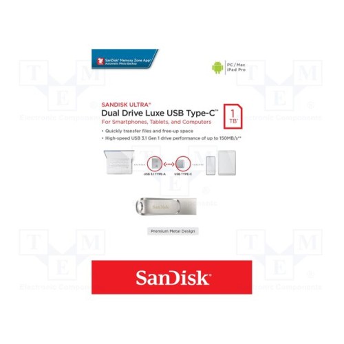 SANDISK SDDDC4-1T00-G46 | Флешка; USB 3.1; 1ТБ; R: 150МБ/с; ULTRA DUAL DRIVE LUXE