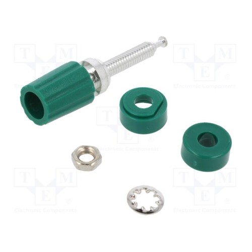 POMONA 3760-5 | Роз’єм: банан 4мм; гніздо; 2500В; 15А; зелений; луджений; на панель