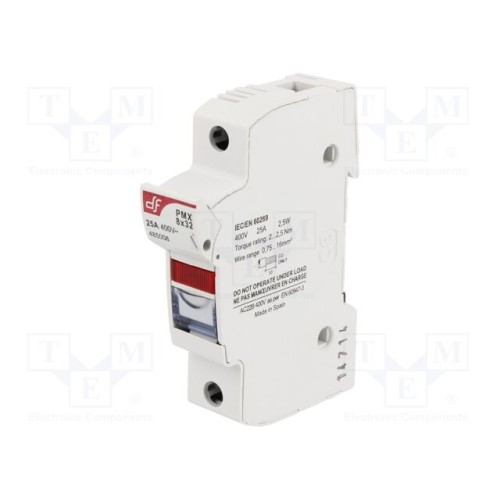 DF ELECTRIC 485008 | Гніздо; 8x31мм; на шину DIN; 25А; 400ВAC; Полюси: 1; 400ВDC; сірий