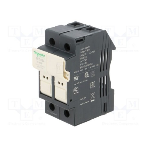SCHNEIDER ELECTRIC DF102V | База запобіжника; 10x38мм; на шину DIN; 32А; 690В; Полюси: 2