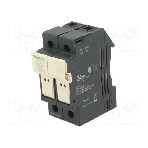 SCHNEIDER ELECTRIC DFCC2 | База запобіжника; 10x38мм; на шину DIN; 30А; Полюси: 2