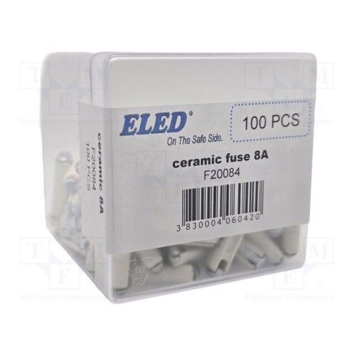 ELED F20084 | Запобіжник: плавка; 8А; 32ВDC; керамічний,автомобільний; 6x25мм