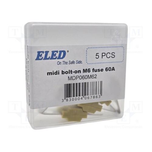 ELED MDP060M62 | Запобіжник: плавка; 60А; 58ВDC; автомобільний; 41мм; гвинт М6