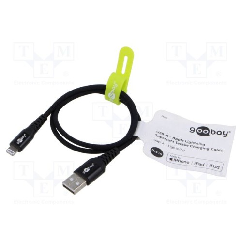 GOOBAY 74485 | Кабель; USB 2.0; Apple Lightning вилка,USB A вилка; 0,5м; чорний