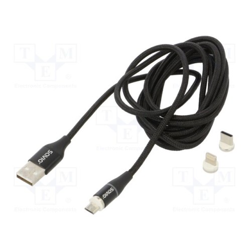 SAVIO CL-155 | Кабель; магнітний,USB 2.0; 2м; чорний; 480Мбіт/с; текстильне; 3А