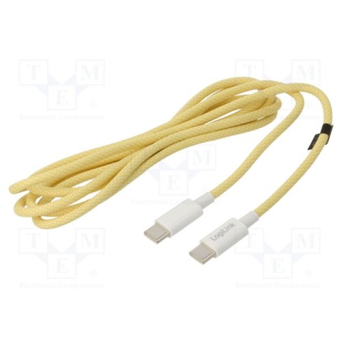 LOGILINK CU0354 | Кабель; USB 2.0; USB C вилка,з обох сторін; 1,5м; жовтий; 60Вт; 3А