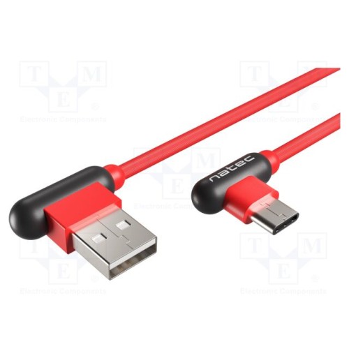 NATEC NKA-1201 | Кабель; USB 2.0; USB A кутова вилка,USB C кутова вилка; 1м; гума