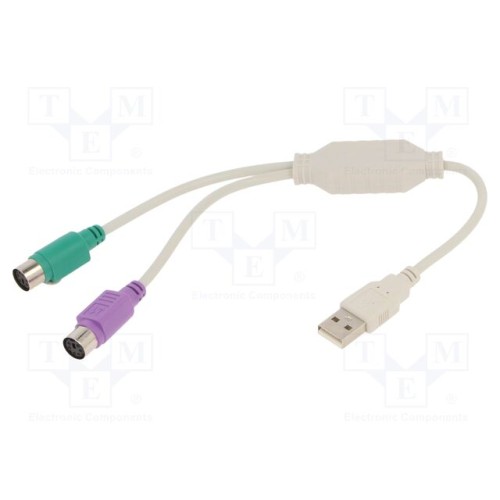 GEMBIRD UAPS12 | Адаптер; USB 2.0; PS/2 гніздо x2,USB A вилка; 0,3м; білий