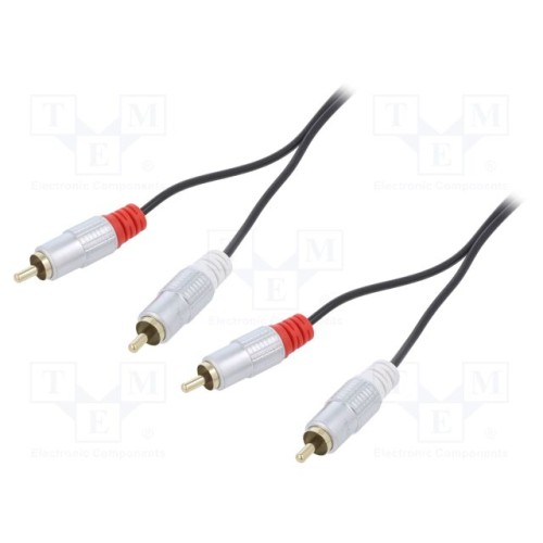 QOLTEC 52336 | Кабель; RCA вилка x2,з обох сторін; 1м; Покриття: позолочений