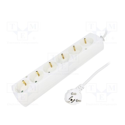 JONEX 5907570028197 SCHUKO | Мережевий подовжувач; 3x1,5мм2; Schuko; Гнізда: 6; ПВХ; білий; 16А