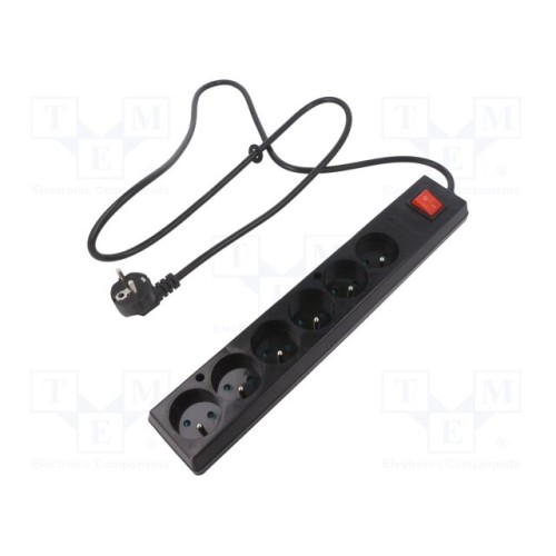 JONEX 5907570033429 | Мережевий подовжувач; 3x1,5мм2; Гнізда: 6; ПВХ; чорний; 1,5м; 16А