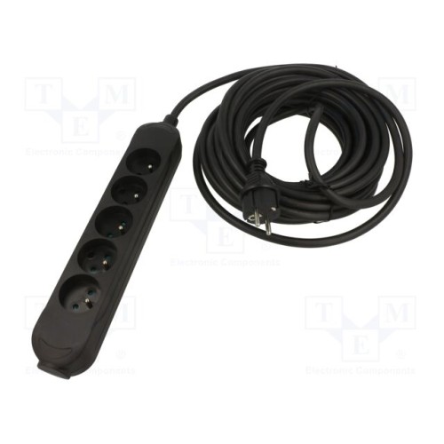 JONEX 5907570042582 | Мережевий подовжувач; 3x1,5мм2; Гнізда: 5; гума; чорний; 5м; 16А