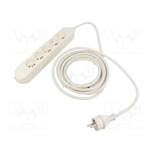 JONEX 5907570042766 | Мережевий подовжувач; 3x2,5мм2; Гнізда: 5; ПВХ; білий; 10м; 16А; PRO