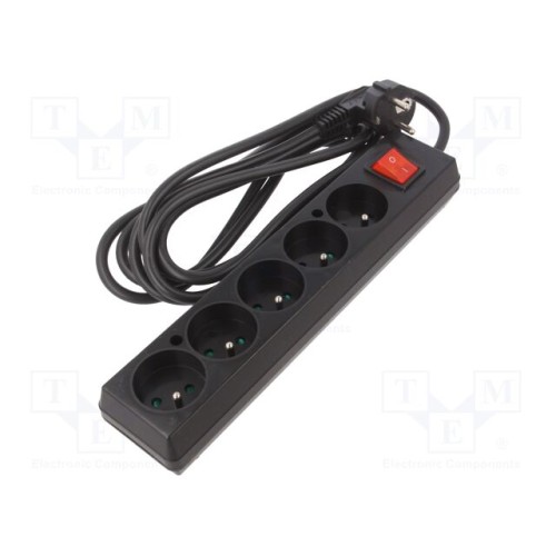 JONEX 5907570042933 | Мережевий подовжувач; 3x1,5мм2; Гнізда: 5; ПВХ; чорний; 3м; 16А