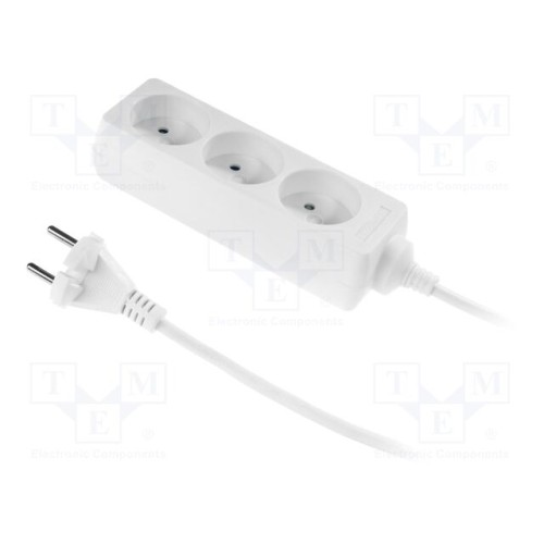 PLASTROL W-97471 | Мережевий подовжувач; 2x1мм2; Schuko; Гнізда: 3; ПВХ; білий; 1,5м