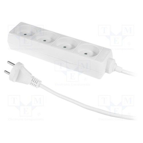 PLASTROL W-97477 | Мережевий подовжувач; 2x1мм2; Schuko; Гнізда: 4; ПВХ; білий; 1,5м