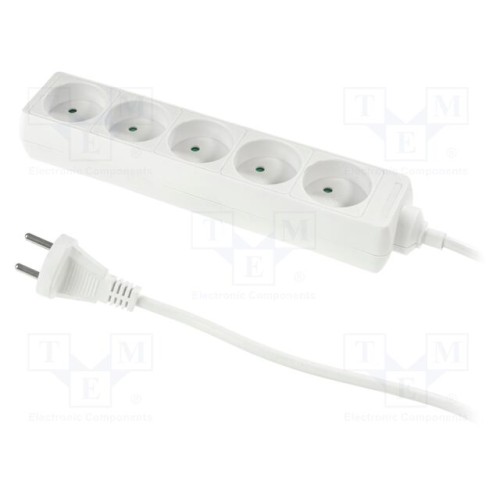 PLASTROL W-97485 | Мережевий подовжувач; 2x1мм2; Schuko; Гнізда: 5; ПВХ; білий; 5м; 10А