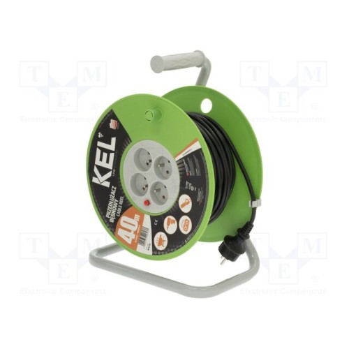 KEL W-97776 | Мережевий подовжувач; 3x1мм2; на котушці; Гнізда: 4; ПВХ; чорний