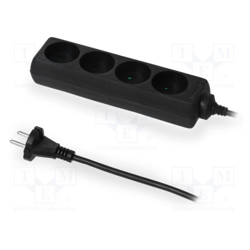 PLASTROL W-98181 | Мережевий подовжувач; 2x1мм2; Schuko; Гнізда: 4; ПВХ; чорний; 5м