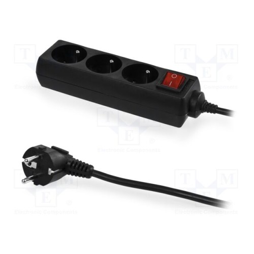 PLASTROL W-98186 | Мережевий подовжувач; 3x1мм2; Schuko; Гнізда: 3; ПВХ; чорний; 3м