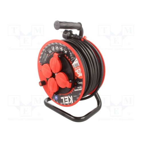 KEL W-98476 | Мережевий подовжувач; 3x2,5мм2; на котушці; Гнізда: 4; гума; 25м