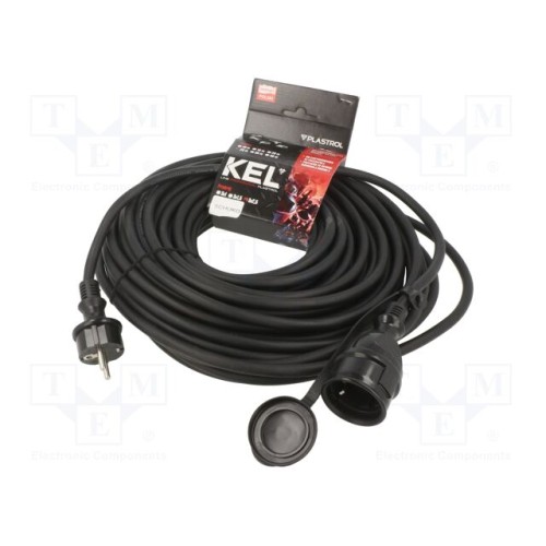 KEL W-98659 | Мережевий подовжувач; 3x2,5мм2; Гнізда: 1; гума; чорний; 25м; 16А