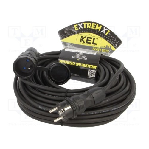 KEL W-99198 | Мережевий подовжувач; 3x1,5мм2; Гнізда: 1; гума; чорний; 30м; 16А