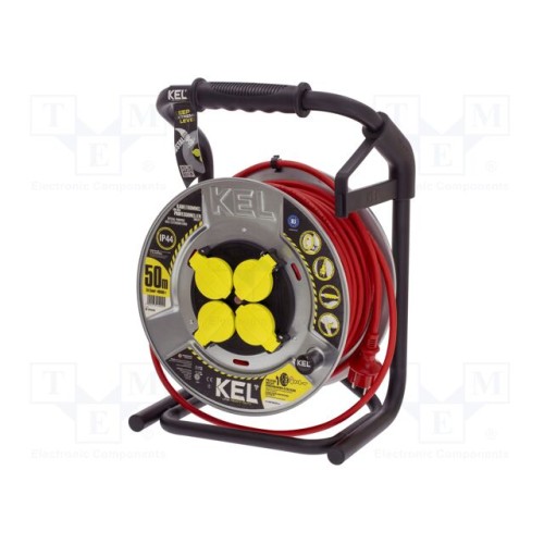 KEL W-99466 | Мережевий подовжувач; 3x1,5мм2; Гнізда: 4; гума; червоний; 50м; 16А