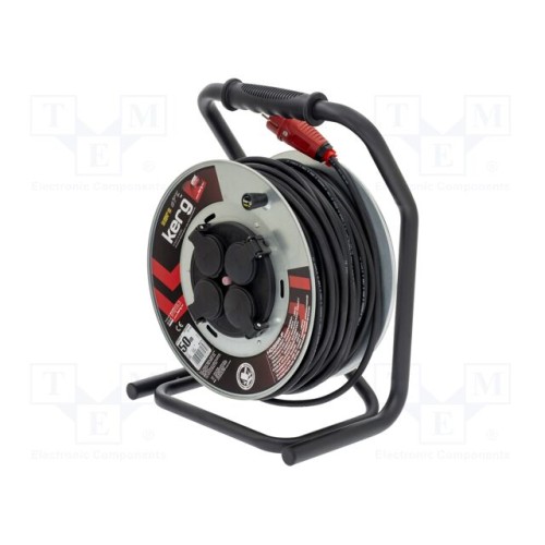 KERG W2241 | Мережевий подовжувач; 3x1,5мм2; на котушці; Гнізда: 4; гума; 50м