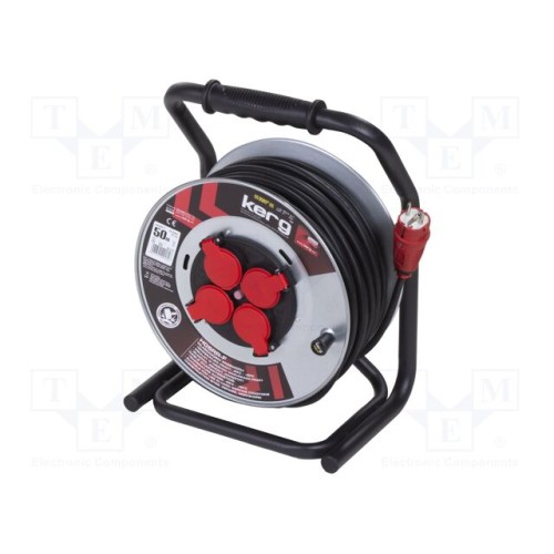 KERG W2379 | Мережевий подовжувач; 3x1,5мм2; на котушці; Гнізда: 4; гума; 50м