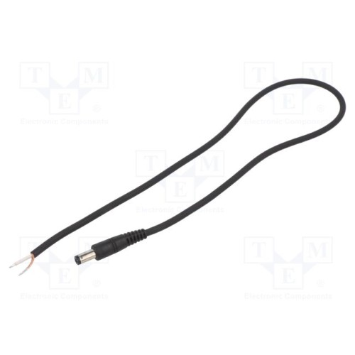 WEST POL P21-TT-C075-050BK | Кабель; 1x0,75мм2; провода,DC 5,5/2,1 вилка; прямий; чорний; 0,5м