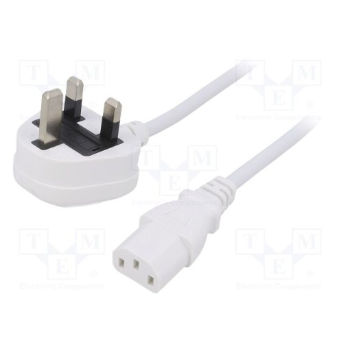 LIAN DUNG LT-318(3A)+501 3X0.75 WHT 2M | Кабель; 3x0,75мм2; BS 1363 (G) вилка,IEC C13 гніздовий; ПВХ; 2м