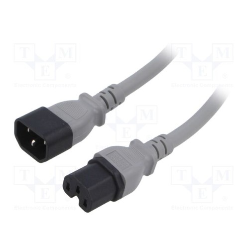 LIAN DUNG LT-602+545 SJT 14/3 105C GRY 1M | Кабель; 3x14AWG; IEC C14 \"папа\",IEC C15 \"мама\"; ПВХ; 1м; сірий