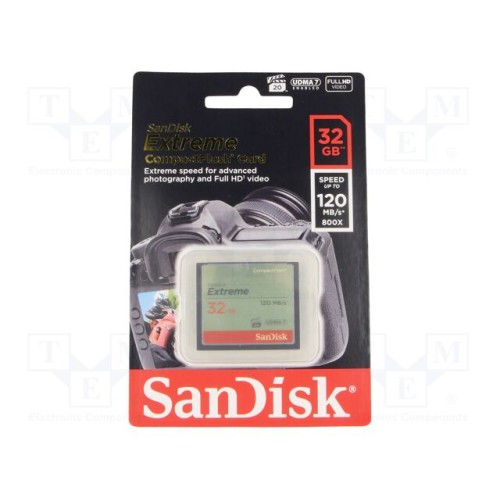 SANDISK SDCFXSB-032G-G46 | Карта пам\'яті; Compact Flash; R: 120МБ/с; W: 60МБ/с; 32ГБ