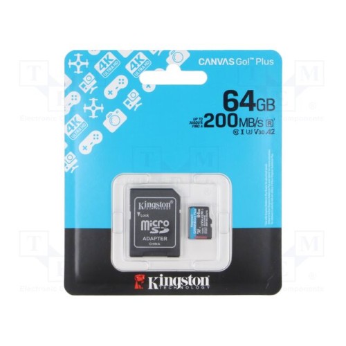 KINGSTON TECHNOLOGY SDCG4/64GB | Карта пам\'яті; microSDXC; R: 170МБ/с; W: 70МБ/с; Class 10 UHS I U3