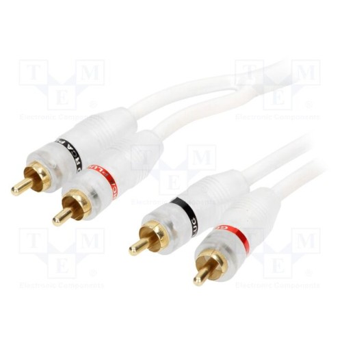 4CARMEDIA RCA-WH2.300 | Кабель; RCA вилка x2,з обох сторін; 3м; білий; для підсилювачів