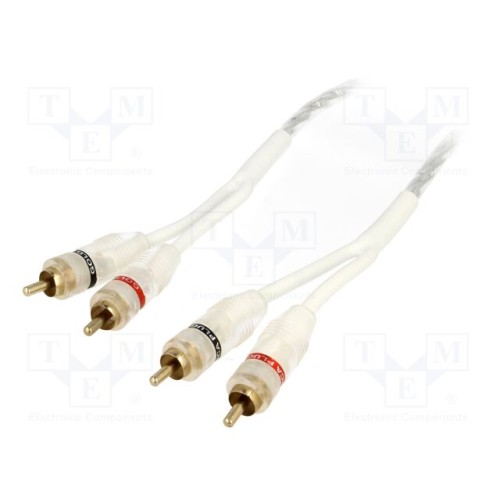 4CARMEDIA RCA-WH2.500 | Кабель; RCA вилка x2,з обох сторін; 5м; білий; для підсилювачів